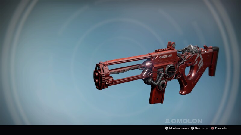 This image is a screenshot of a weapon from the Destiny series of first-person shooter video games developed by Bungie Studios and published by Bungie or Activision. It falls under the screenshot category for a copyrighted computer game or video game, and the copyright for it is most likely held by the company that developed the game. It is believed that the use of a limited number of web-resolution screenshots: