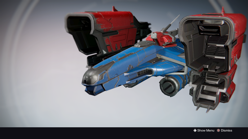 This image is a screenshot of a vehicle from the Destiny series of first-person shooter video games developed by Bungie Studios and published by Bungie or Activision. It falls under the screenshot category for a copyrighted computer game or video game, and the copyright for it is most likely held by the company that developed the game. It is believed that the use of a limited number of web-resolution screenshots: