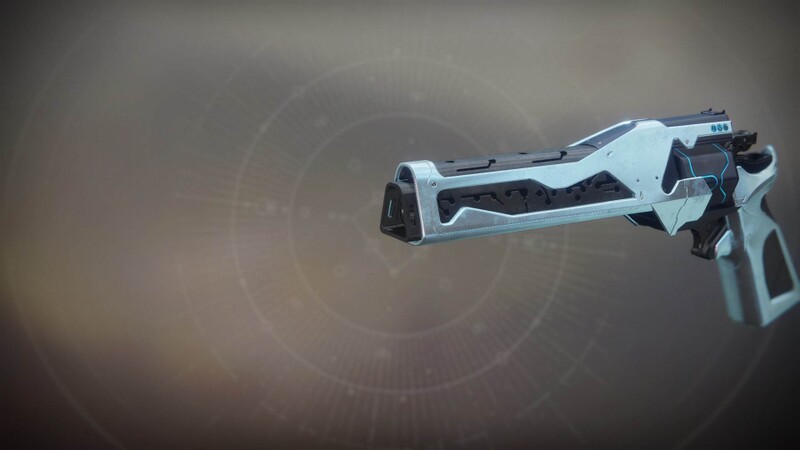 This image is a screenshot of a weapon from the Destiny series of first-person shooter video games developed by Bungie Studios and published by Bungie or Activision. It falls under the screenshot category for a copyrighted computer game or video game, and the copyright for it is most likely held by the company that developed the game. It is believed that the use of a limited number of web-resolution screenshots: