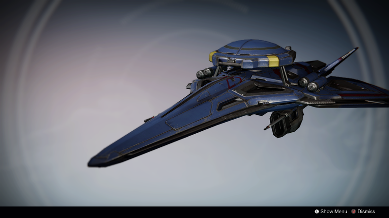 This image is a screenshot of a vehicle from the Destiny series of first-person shooter video games developed by Bungie Studios and published by Bungie or Activision. It falls under the screenshot category for a copyrighted computer game or video game, and the copyright for it is most likely held by the company that developed the game. It is believed that the use of a limited number of web-resolution screenshots:
