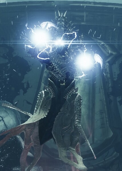 This image is a screenshot of a character or AI unit from the Destiny series of first-person shooter video games developed by Bungie Studios and published by Bungie or Activision. It falls under the screenshot category for a copyrighted computer game or video game, and the copyright for it is most likely held by the company that developed the game. It is believed that the use of a limited number of web-resolution screenshots: