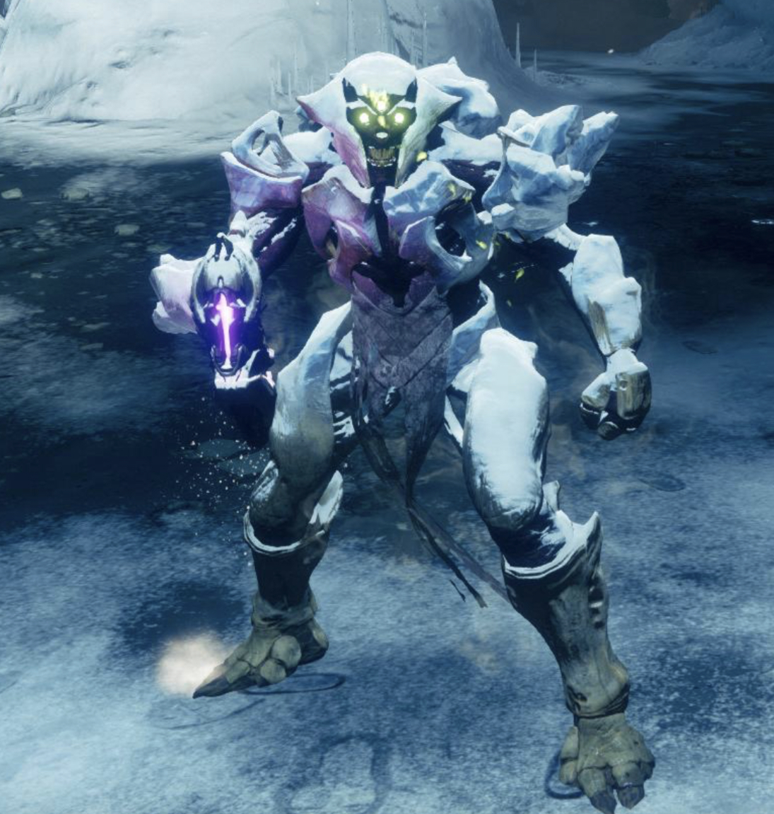 This image is a screenshot of a character or AI unit from the Destiny series of first-person shooter video games developed by Bungie Studios and published by Bungie or Activision. It falls under the screenshot category for a copyrighted computer game or video game, and the copyright for it is most likely held by the company that developed the game. It is believed that the use of a limited number of web-resolution screenshots: