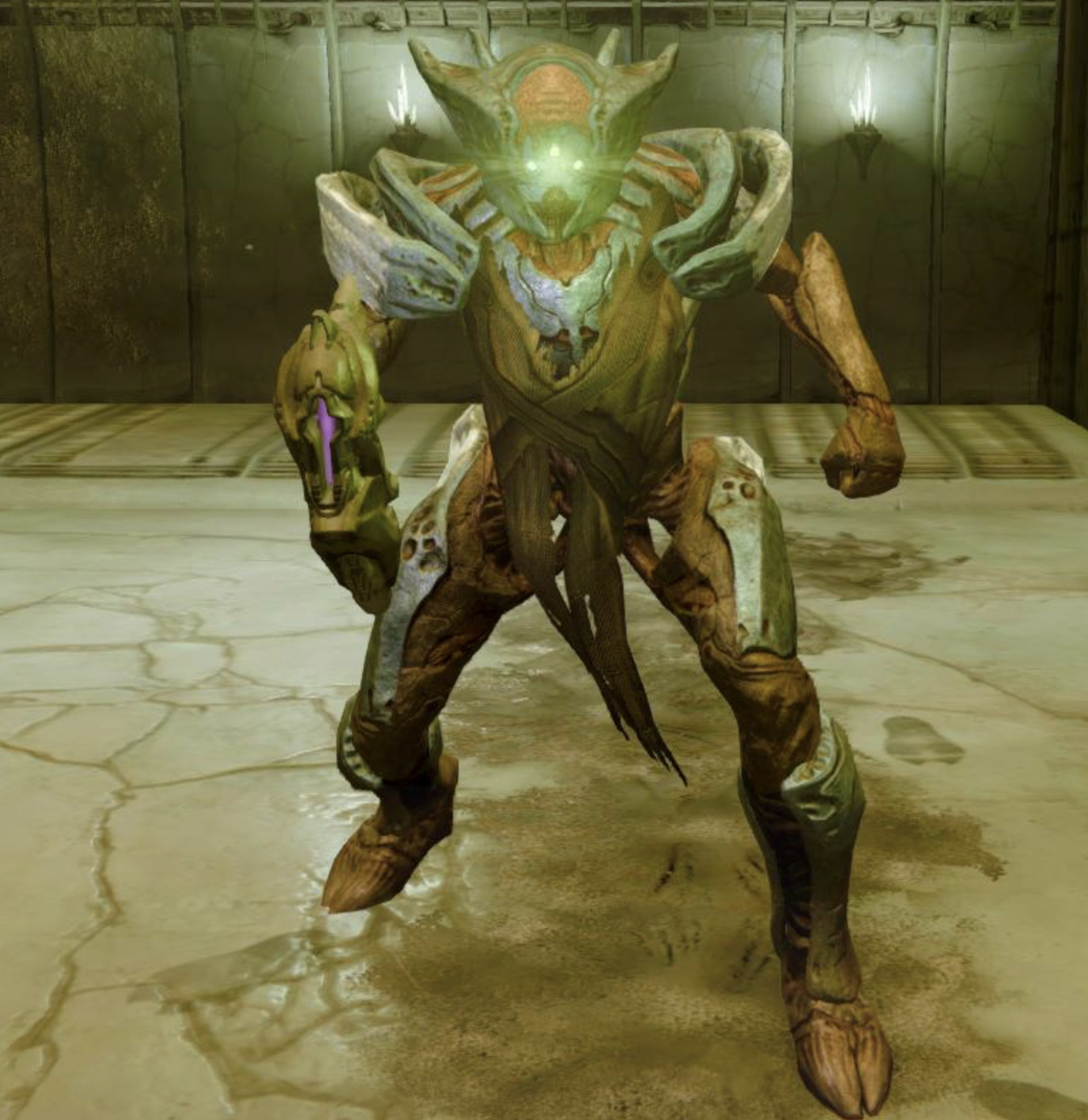 This image is a screenshot of a character or AI unit from the Destiny series of first-person shooter video games developed by Bungie Studios and published by Bungie or Activision. It falls under the screenshot category for a copyrighted computer game or video game, and the copyright for it is most likely held by the company that developed the game. It is believed that the use of a limited number of web-resolution screenshots: