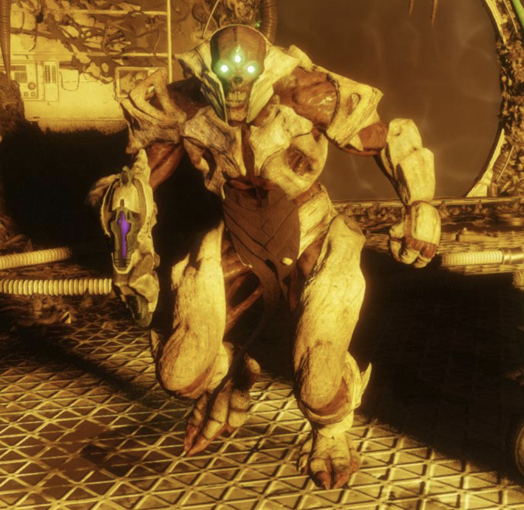 This image is a screenshot of a character or AI unit from the Destiny series of first-person shooter video games developed by Bungie Studios and published by Bungie or Activision. It falls under the screenshot category for a copyrighted computer game or video game, and the copyright for it is most likely held by the company that developed the game. It is believed that the use of a limited number of web-resolution screenshots:
