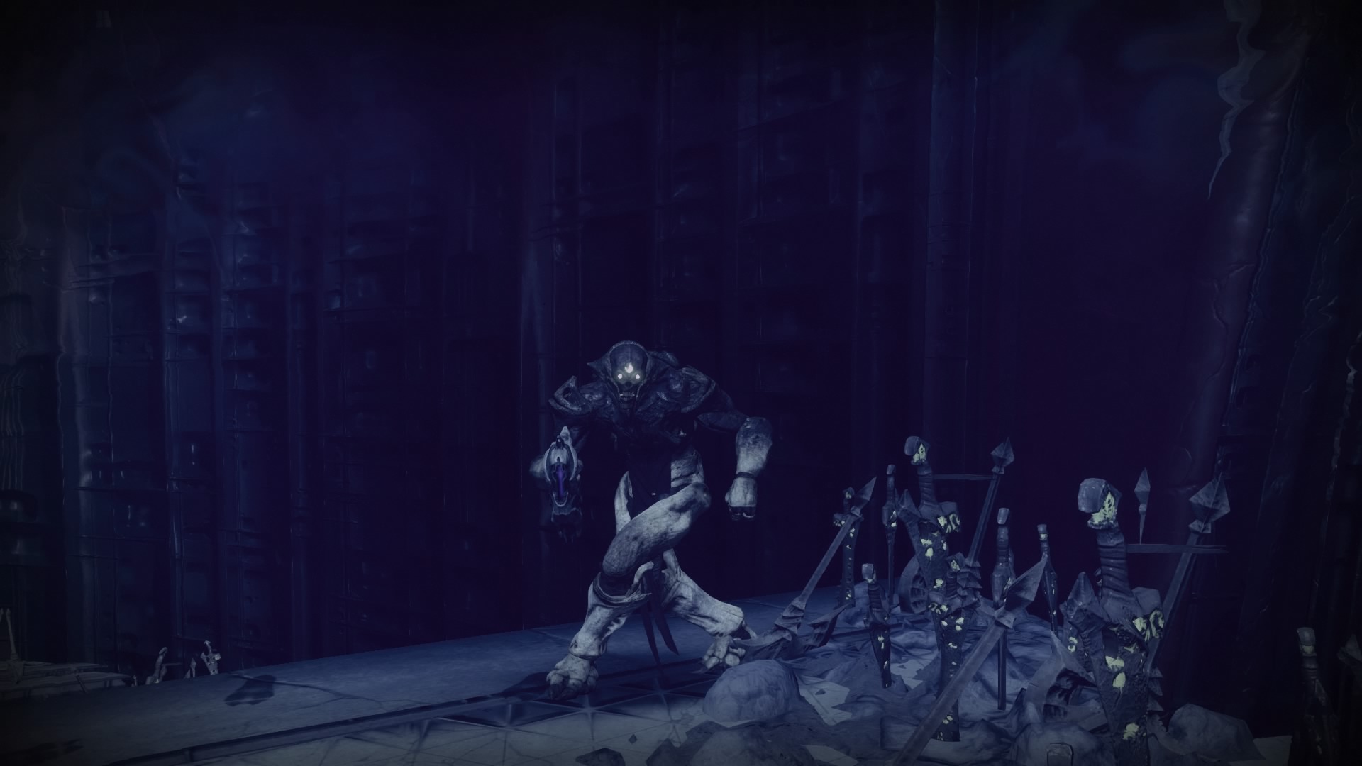 This image is a screenshot of a character or AI unit from the Destiny series of first-person shooter video games developed by Bungie Studios and published by Bungie or Activision. It falls under the screenshot category for a copyrighted computer game or video game, and the copyright for it is most likely held by the company that developed the game. It is believed that the use of a limited number of web-resolution screenshots: