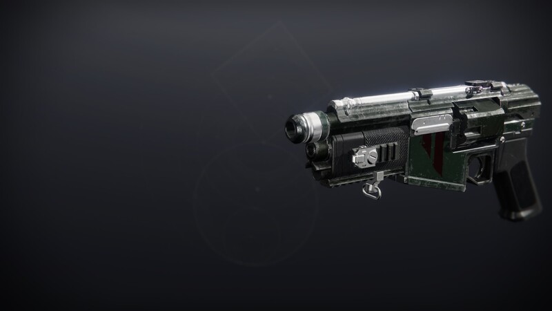 This image is a screenshot of a weapon from the Destiny series of first-person shooter video games developed by Bungie Studios and published by Bungie or Activision. It falls under the screenshot category for a copyrighted computer game or video game, and the copyright for it is most likely held by the company that developed the game. It is believed that the use of a limited number of web-resolution screenshots: