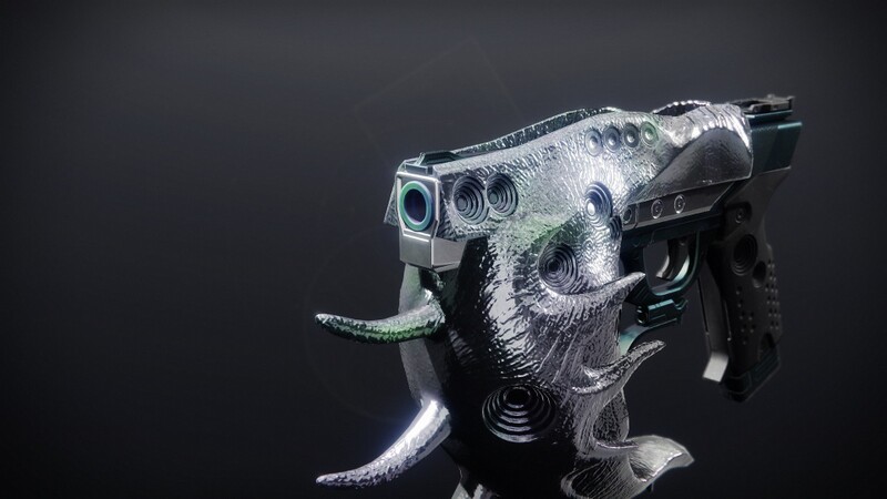 This image is a screenshot of a weapon from the Destiny series of first-person shooter video games developed by Bungie Studios and published by Bungie or Activision. It falls under the screenshot category for a copyrighted computer game or video game, and the copyright for it is most likely held by the company that developed the game. It is believed that the use of a limited number of web-resolution screenshots: