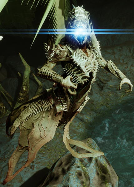 This image is a screenshot of a character or AI unit from the Destiny series of first-person shooter video games developed by Bungie Studios and published by Bungie or Activision. It falls under the screenshot category for a copyrighted computer game or video game, and the copyright for it is most likely held by the company that developed the game. It is believed that the use of a limited number of web-resolution screenshots:
