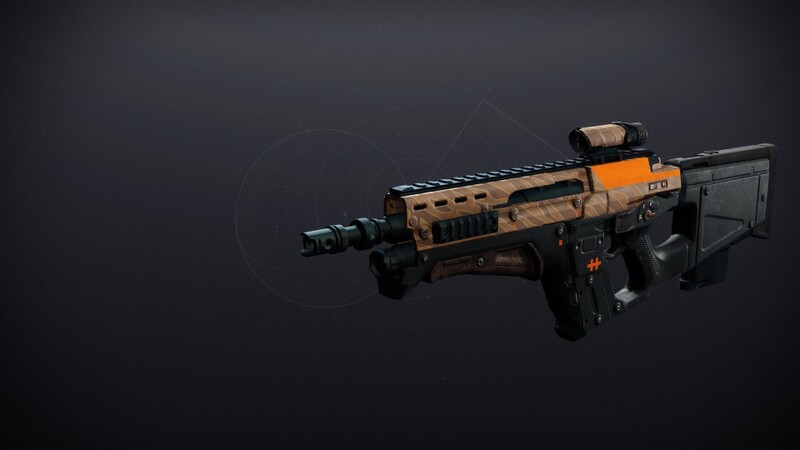 This image is a screenshot of a weapon from the Destiny series of first-person shooter video games developed by Bungie Studios and published by Bungie or Activision. It falls under the screenshot category for a copyrighted computer game or video game, and the copyright for it is most likely held by the company that developed the game. It is believed that the use of a limited number of web-resolution screenshots: