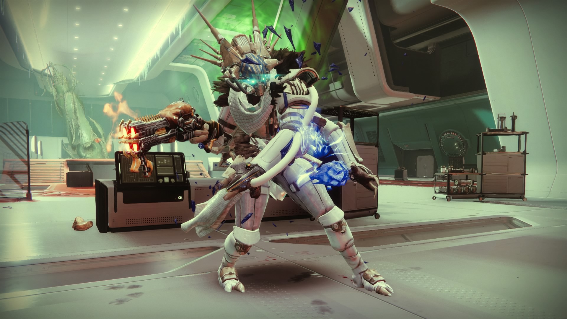 This image is a screenshot of a character or AI unit from the Destiny series of first-person shooter video games developed by Bungie Studios and published by Bungie or Activision. It falls under the screenshot category for a copyrighted computer game or video game, and the copyright for it is most likely held by the company that developed the game. It is believed that the use of a limited number of web-resolution screenshots:
