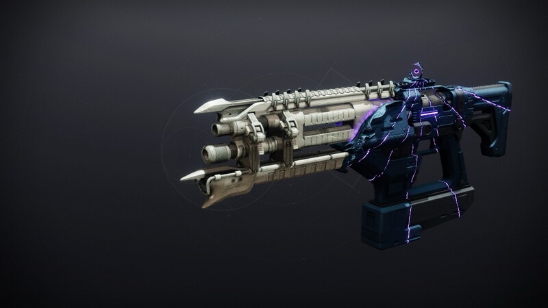 This image is a screenshot of a weapon from the Destiny series of first-person shooter video games developed by Bungie Studios and published by Bungie or Activision. It falls under the screenshot category for a copyrighted computer game or video game, and the copyright for it is most likely held by the company that developed the game. It is believed that the use of a limited number of web-resolution screenshots: