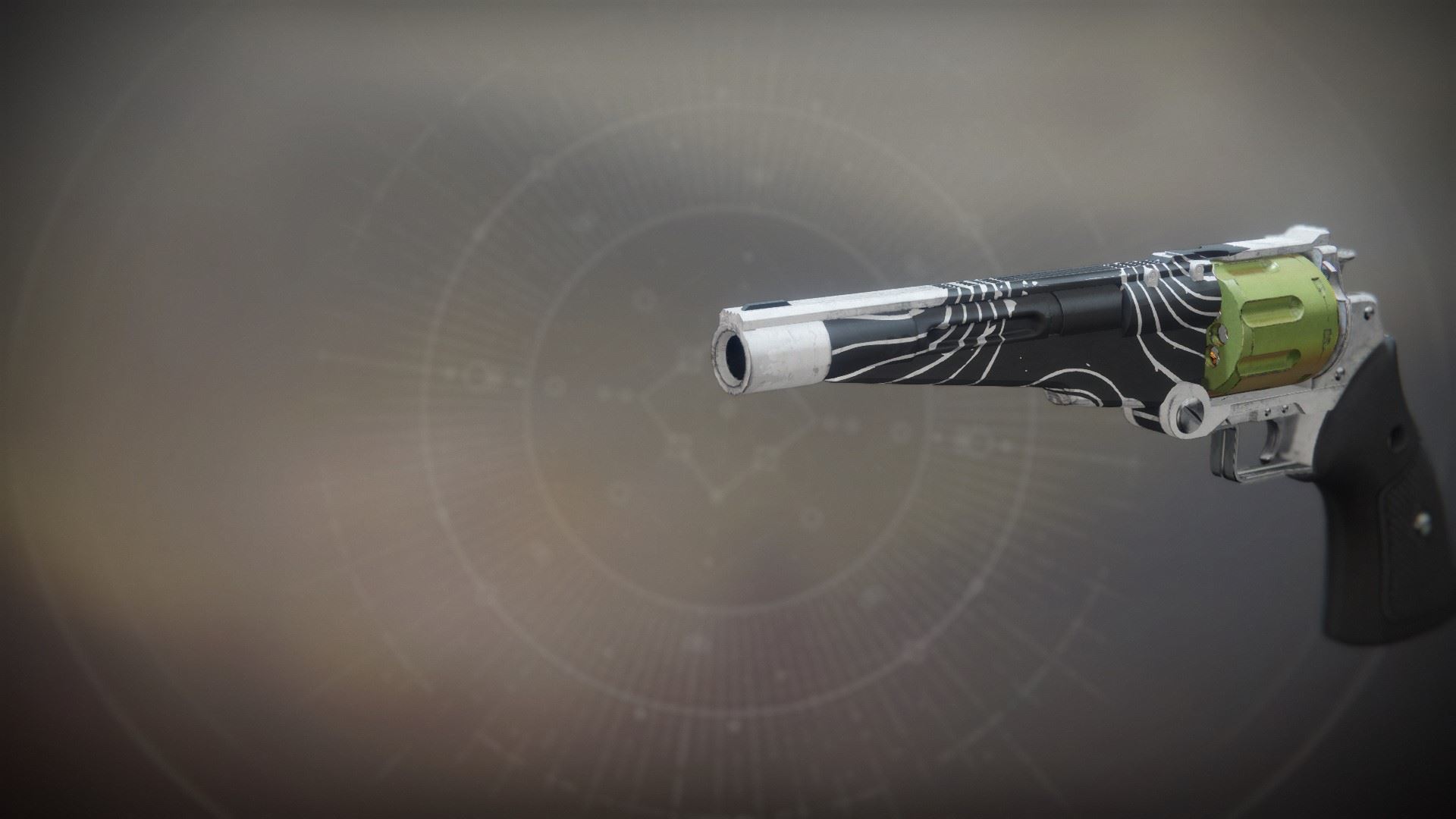 This image is a screenshot of a weapon from the Destiny series of first-person shooter video games developed by Bungie Studios and published by Bungie or Activision. It falls under the screenshot category for a copyrighted computer game or video game, and the copyright for it is most likely held by the company that developed the game. It is believed that the use of a limited number of web-resolution screenshots: