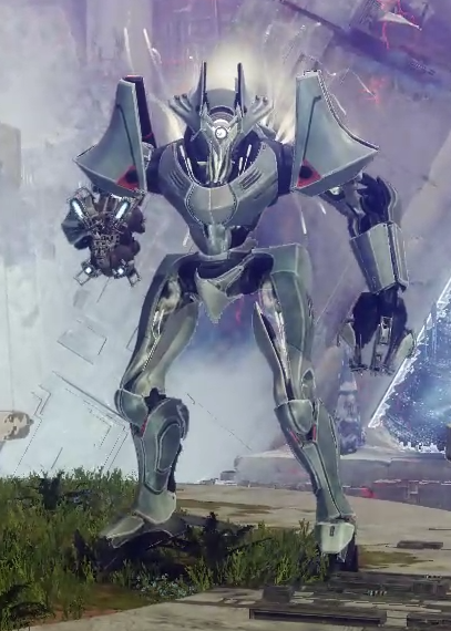 This image is a screenshot of a character or AI unit from the Destiny series of first-person shooter video games developed by Bungie Studios and published by Bungie or Activision. It falls under the screenshot category for a copyrighted computer game or video game, and the copyright for it is most likely held by the company that developed the game. It is believed that the use of a limited number of web-resolution screenshots: