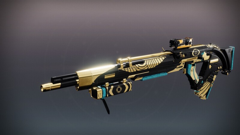 This image is a screenshot of a weapon from the Destiny series of first-person shooter video games developed by Bungie Studios and published by Bungie or Activision. It falls under the screenshot category for a copyrighted computer game or video game, and the copyright for it is most likely held by the company that developed the game. It is believed that the use of a limited number of web-resolution screenshots:
