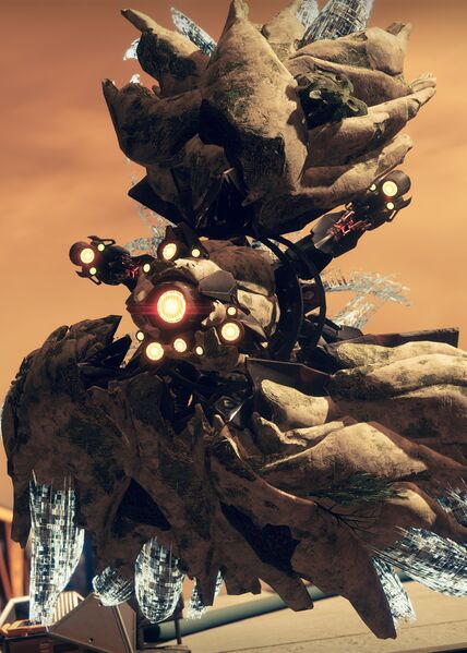 This image is a screenshot of a character or AI unit from the Destiny series of first-person shooter video games developed by Bungie Studios and published by Bungie or Activision. It falls under the screenshot category for a copyrighted computer game or video game, and the copyright for it is most likely held by the company that developed the game. It is believed that the use of a limited number of web-resolution screenshots: