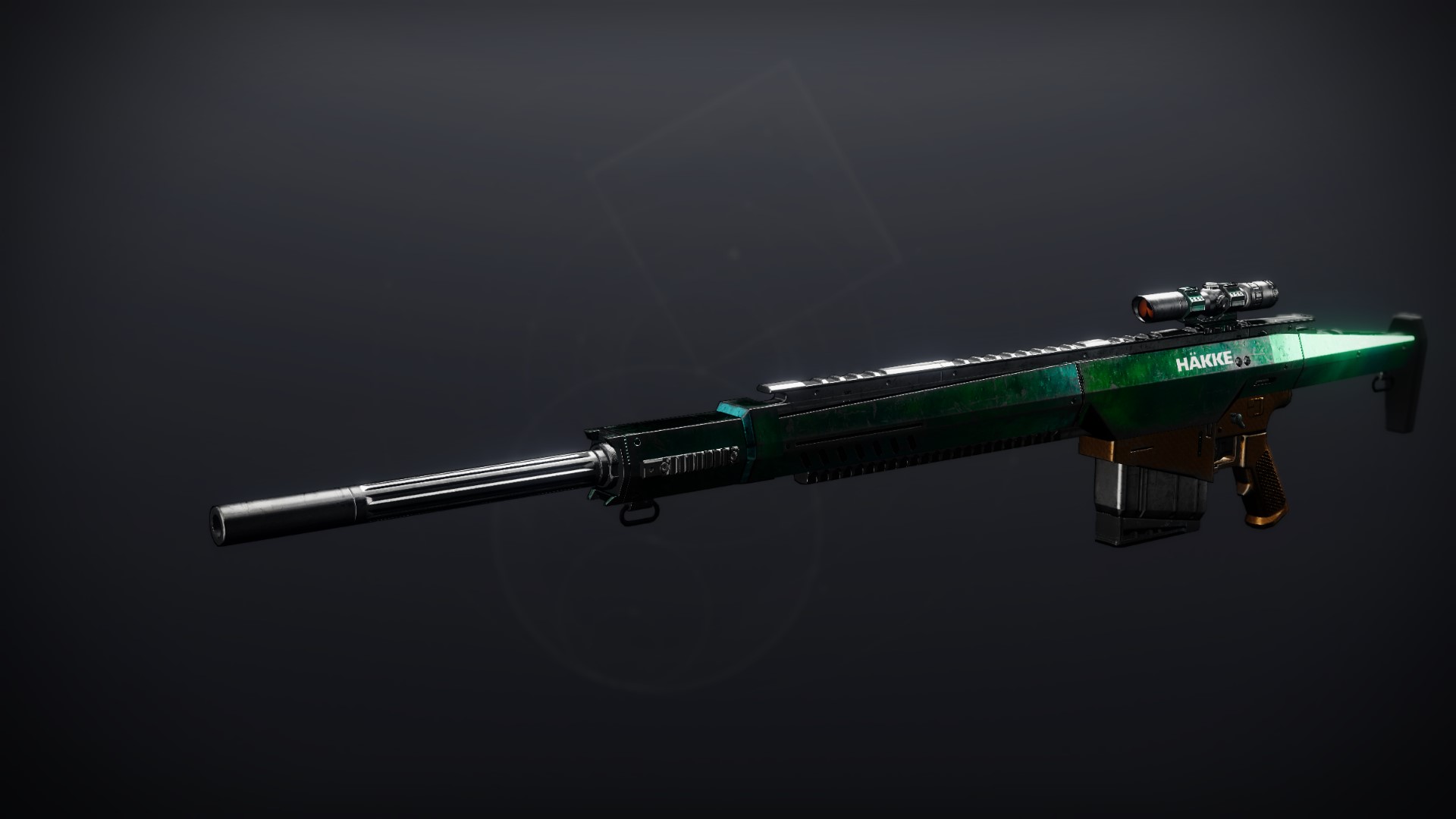 This image is a screenshot of a weapon from the Destiny series of first-person shooter video games developed by Bungie Studios and published by Bungie or Activision. It falls under the screenshot category for a copyrighted computer game or video game, and the copyright for it is most likely held by the company that developed the game. It is believed that the use of a limited number of web-resolution screenshots: