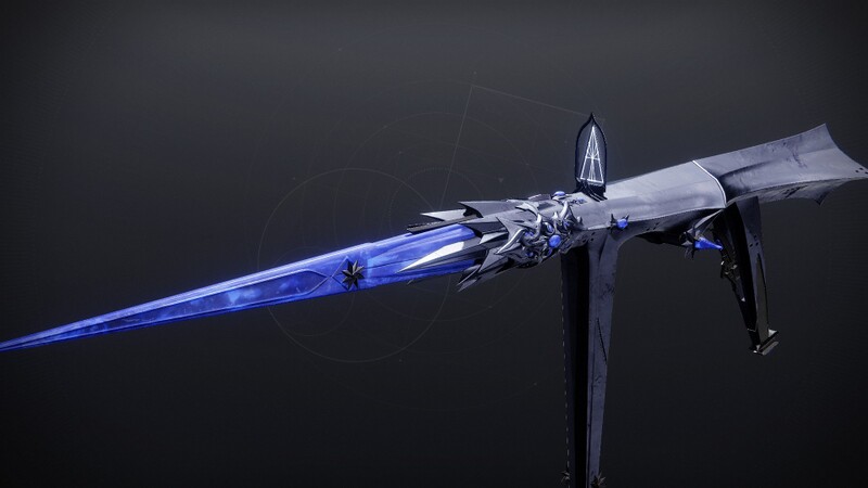 This image is a screenshot of a weapon from the Destiny series of first-person shooter video games developed by Bungie Studios and published by Bungie or Activision. It falls under the screenshot category for a copyrighted computer game or video game, and the copyright for it is most likely held by the company that developed the game. It is believed that the use of a limited number of web-resolution screenshots: