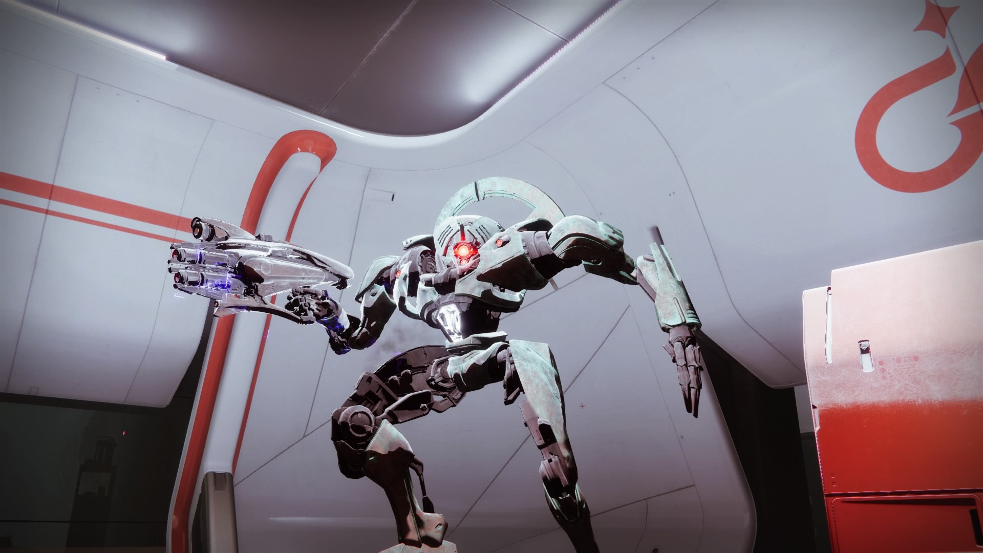 This image is a screenshot of a character or AI unit from the Destiny series of first-person shooter video games developed by Bungie Studios and published by Bungie or Activision. It falls under the screenshot category for a copyrighted computer game or video game, and the copyright for it is most likely held by the company that developed the game. It is believed that the use of a limited number of web-resolution screenshots: