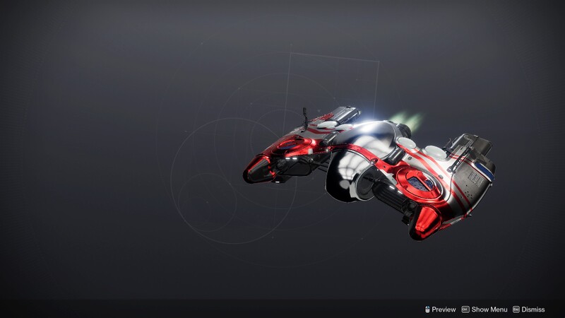 This image is a screenshot of a vehicle from the Destiny series of first-person shooter video games developed by Bungie Studios and published by Bungie or Activision. It falls under the screenshot category for a copyrighted computer game or video game, and the copyright for it is most likely held by the company that developed the game. It is believed that the use of a limited number of web-resolution screenshots: