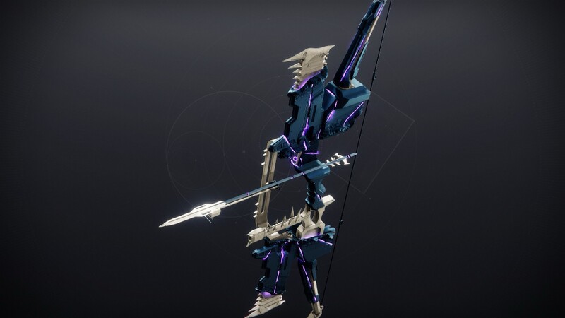 This image is a screenshot of a weapon from the Destiny series of first-person shooter video games developed by Bungie Studios and published by Bungie or Activision. It falls under the screenshot category for a copyrighted computer game or video game, and the copyright for it is most likely held by the company that developed the game. It is believed that the use of a limited number of web-resolution screenshots: