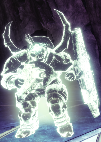 This image is a screenshot of a character or AI unit from the Destiny series of first-person shooter video games developed by Bungie Studios and published by Bungie or Activision. It falls under the screenshot category for a copyrighted computer game or video game, and the copyright for it is most likely held by the company that developed the game. It is believed that the use of a limited number of web-resolution screenshots: