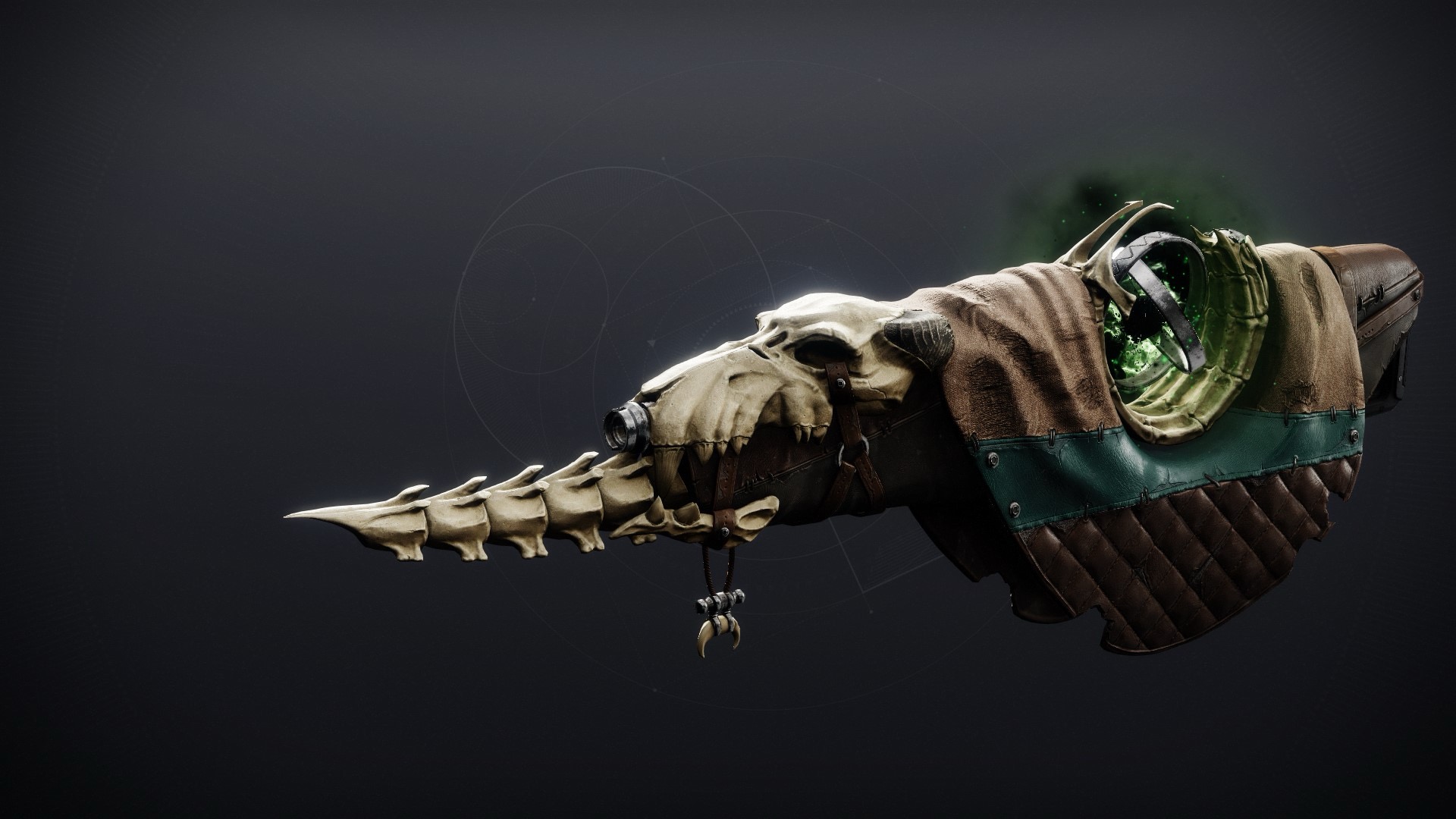 This image is a screenshot of a weapon from the Destiny series of first-person shooter video games developed by Bungie Studios and published by Bungie or Activision. It falls under the screenshot category for a copyrighted computer game or video game, and the copyright for it is most likely held by the company that developed the game. It is believed that the use of a limited number of web-resolution screenshots: