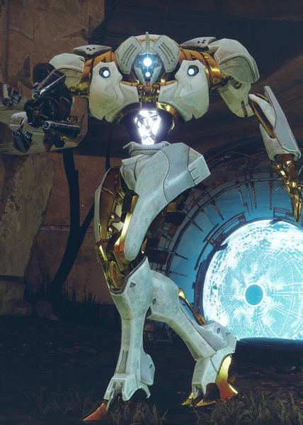 This image is a screenshot of a character or AI unit from the Destiny series of first-person shooter video games developed by Bungie Studios and published by Bungie or Activision. It falls under the screenshot category for a copyrighted computer game or video game, and the copyright for it is most likely held by the company that developed the game. It is believed that the use of a limited number of web-resolution screenshots: