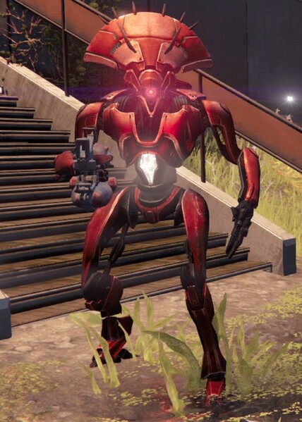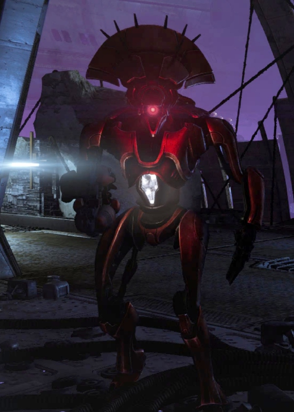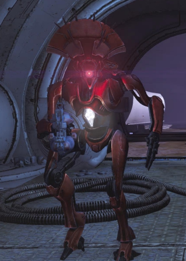 This image is a screenshot of a character or AI unit from the Destiny series of first-person shooter video games developed by Bungie Studios and published by Bungie or Activision. It falls under the screenshot category for a copyrighted computer game or video game, and the copyright for it is most likely held by the company that developed the game. It is believed that the use of a limited number of web-resolution screenshots: