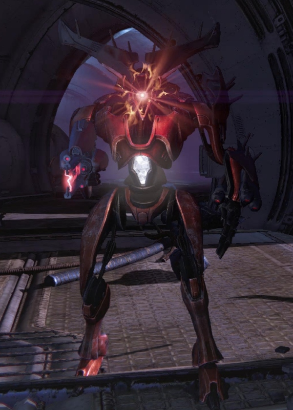 This image is a screenshot of a character or AI unit from the Destiny series of first-person shooter video games developed by Bungie Studios and published by Bungie or Activision. It falls under the screenshot category for a copyrighted computer game or video game, and the copyright for it is most likely held by the company that developed the game. It is believed that the use of a limited number of web-resolution screenshots: