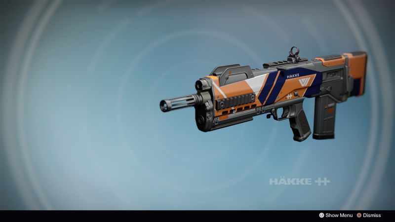 This image is a screenshot of a weapon from the Destiny series of first-person shooter video games developed by Bungie Studios and published by Bungie or Activision. It falls under the screenshot category for a copyrighted computer game or video game, and the copyright for it is most likely held by the company that developed the game. It is believed that the use of a limited number of web-resolution screenshots: