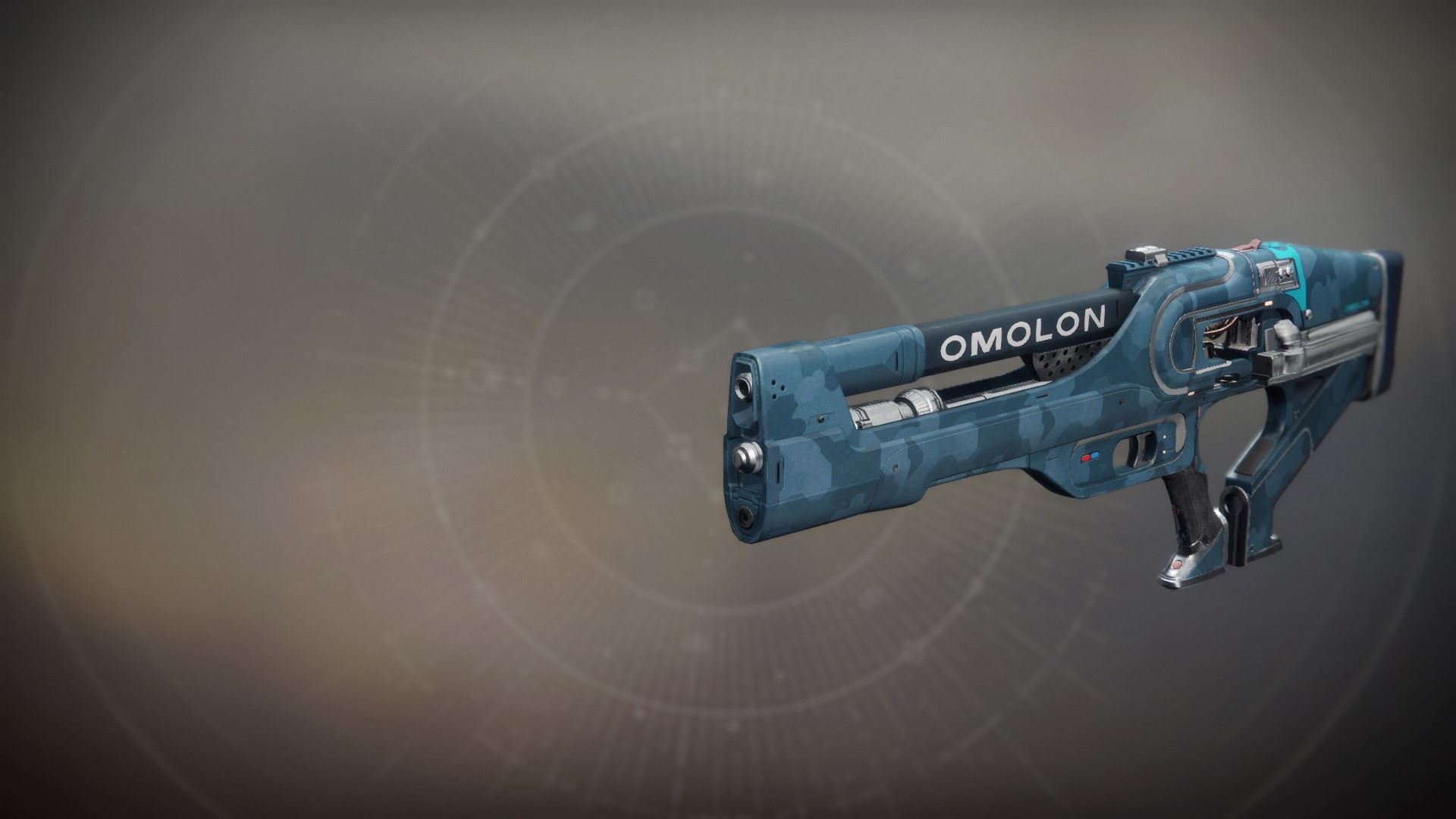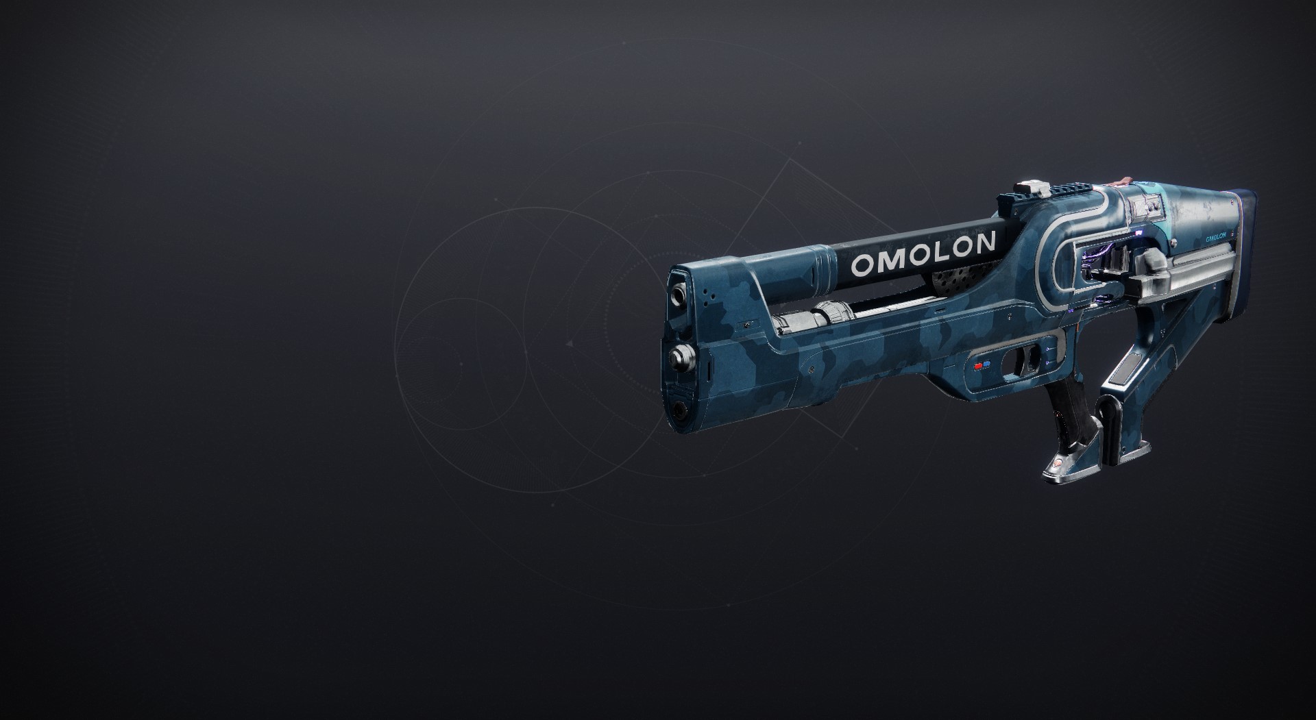 This image is a screenshot of a weapon from the Destiny series of first-person shooter video games developed by Bungie Studios and published by Bungie or Activision. It falls under the screenshot category for a copyrighted computer game or video game, and the copyright for it is most likely held by the company that developed the game. It is believed that the use of a limited number of web-resolution screenshots: