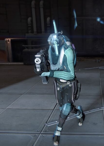 This image is a screenshot of a character or AI unit from the Destiny series of first-person shooter video games developed by Bungie Studios and published by Bungie or Activision. It falls under the screenshot category for a copyrighted computer game or video game, and the copyright for it is most likely held by the company that developed the game. It is believed that the use of a limited number of web-resolution screenshots: