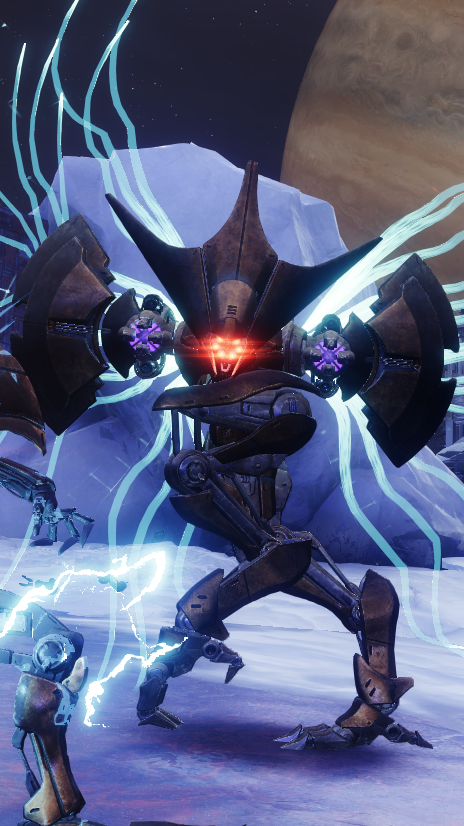 This image is a screenshot of a character or AI unit from the Destiny series of first-person shooter video games developed by Bungie Studios and published by Bungie or Activision. It falls under the screenshot category for a copyrighted computer game or video game, and the copyright for it is most likely held by the company that developed the game. It is believed that the use of a limited number of web-resolution screenshots:
