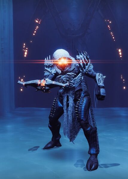 This image is a screenshot of a character or AI unit from the Destiny series of first-person shooter video games developed by Bungie Studios and published by Bungie or Activision. It falls under the screenshot category for a copyrighted computer game or video game, and the copyright for it is most likely held by the company that developed the game. It is believed that the use of a limited number of web-resolution screenshots: