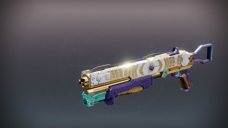 This image is a screenshot of a weapon from the Destiny series of first-person shooter video games developed by Bungie Studios and published by Bungie or Activision. It falls under the screenshot category for a copyrighted computer game or video game, and the copyright for it is most likely held by the company that developed the game. It is believed that the use of a limited number of web-resolution screenshots: