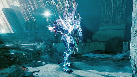 This image is a screenshot of a character or AI unit from the Destiny series of first-person shooter video games developed by Bungie Studios and published by Bungie or Activision. It falls under the screenshot category for a copyrighted computer game or video game, and the copyright for it is most likely held by the company that developed the game. It is believed that the use of a limited number of web-resolution screenshots: