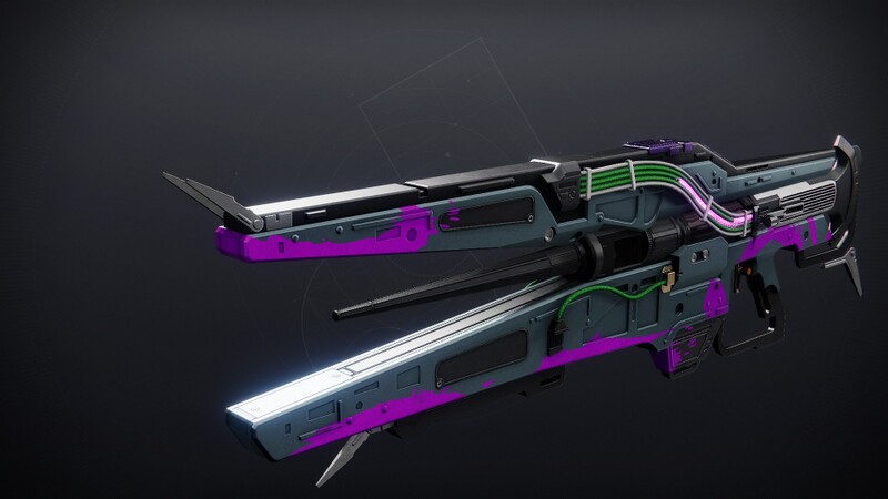 This image is a screenshot of a weapon from the Destiny series of first-person shooter video games developed by Bungie Studios and published by Bungie or Activision. It falls under the screenshot category for a copyrighted computer game or video game, and the copyright for it is most likely held by the company that developed the game. It is believed that the use of a limited number of web-resolution screenshots: