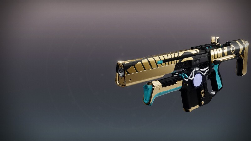 This image is a screenshot of a weapon from the Destiny series of first-person shooter video games developed by Bungie Studios and published by Bungie or Activision. It falls under the screenshot category for a copyrighted computer game or video game, and the copyright for it is most likely held by the company that developed the game. It is believed that the use of a limited number of web-resolution screenshots: