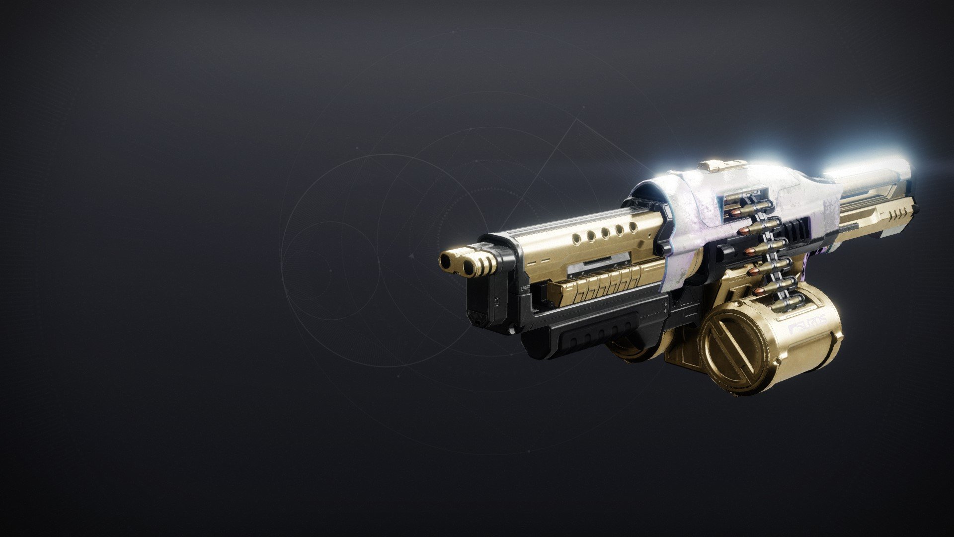 This image is a screenshot of a weapon from the Destiny series of first-person shooter video games developed by Bungie Studios and published by Bungie or Activision. It falls under the screenshot category for a copyrighted computer game or video game, and the copyright for it is most likely held by the company that developed the game. It is believed that the use of a limited number of web-resolution screenshots: