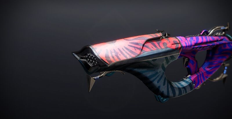 This image is a screenshot of a weapon from the Destiny series of first-person shooter video games developed by Bungie Studios and published by Bungie or Activision. It falls under the screenshot category for a copyrighted computer game or video game, and the copyright for it is most likely held by the company that developed the game. It is believed that the use of a limited number of web-resolution screenshots: