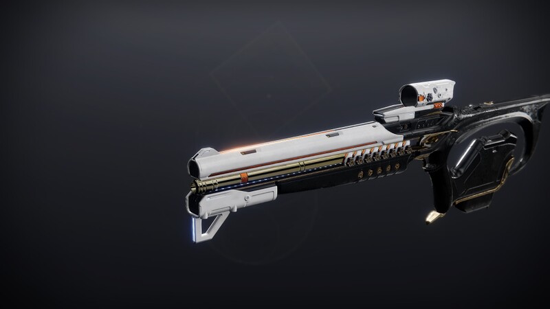 This image is a screenshot of a weapon from the Destiny series of first-person shooter video games developed by Bungie Studios and published by Bungie or Activision. It falls under the screenshot category for a copyrighted computer game or video game, and the copyright for it is most likely held by the company that developed the game. It is believed that the use of a limited number of web-resolution screenshots: