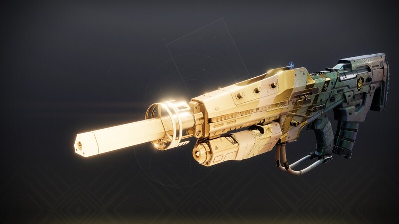 This image is a screenshot of a weapon from the Destiny series of first-person shooter video games developed by Bungie Studios and published by Bungie or Activision. It falls under the screenshot category for a copyrighted computer game or video game, and the copyright for it is most likely held by the company that developed the game. It is believed that the use of a limited number of web-resolution screenshots: