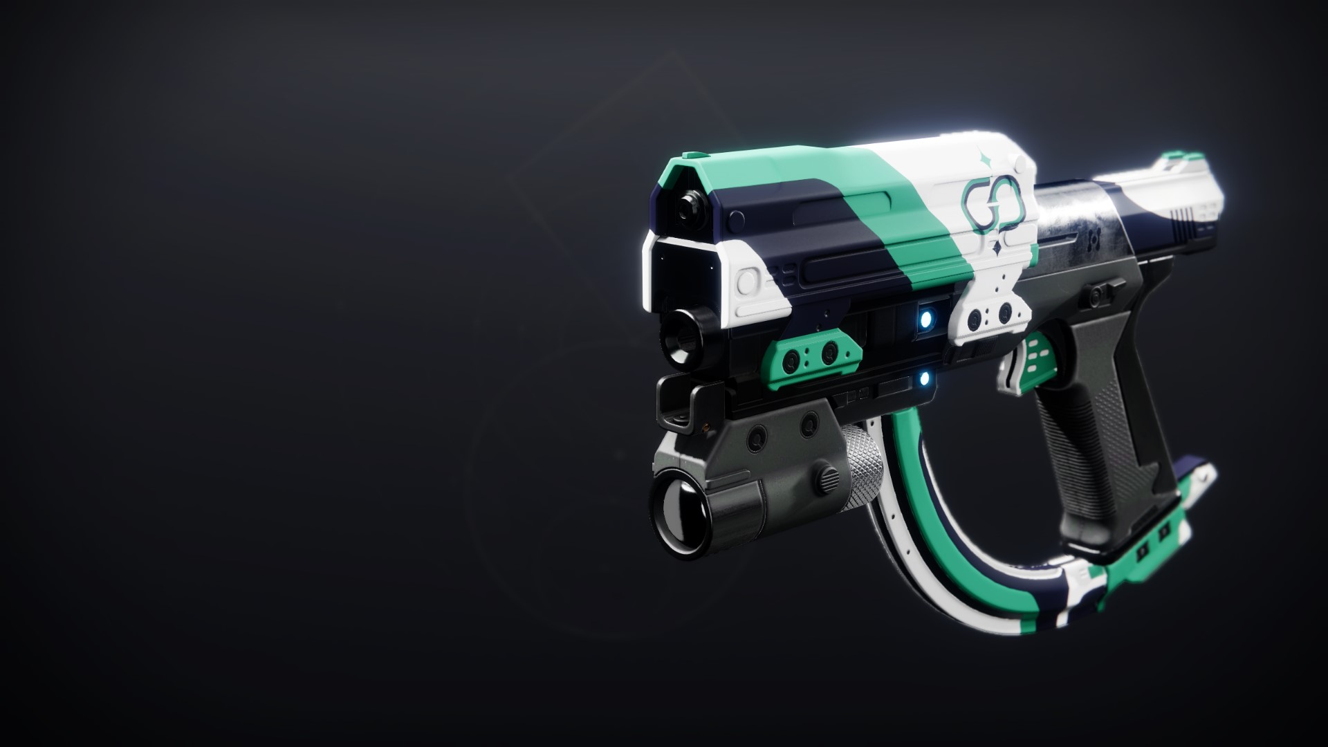 This image is a screenshot of a weapon from the Destiny series of first-person shooter video games developed by Bungie Studios and published by Bungie or Activision. It falls under the screenshot category for a copyrighted computer game or video game, and the copyright for it is most likely held by the company that developed the game. It is believed that the use of a limited number of web-resolution screenshots: