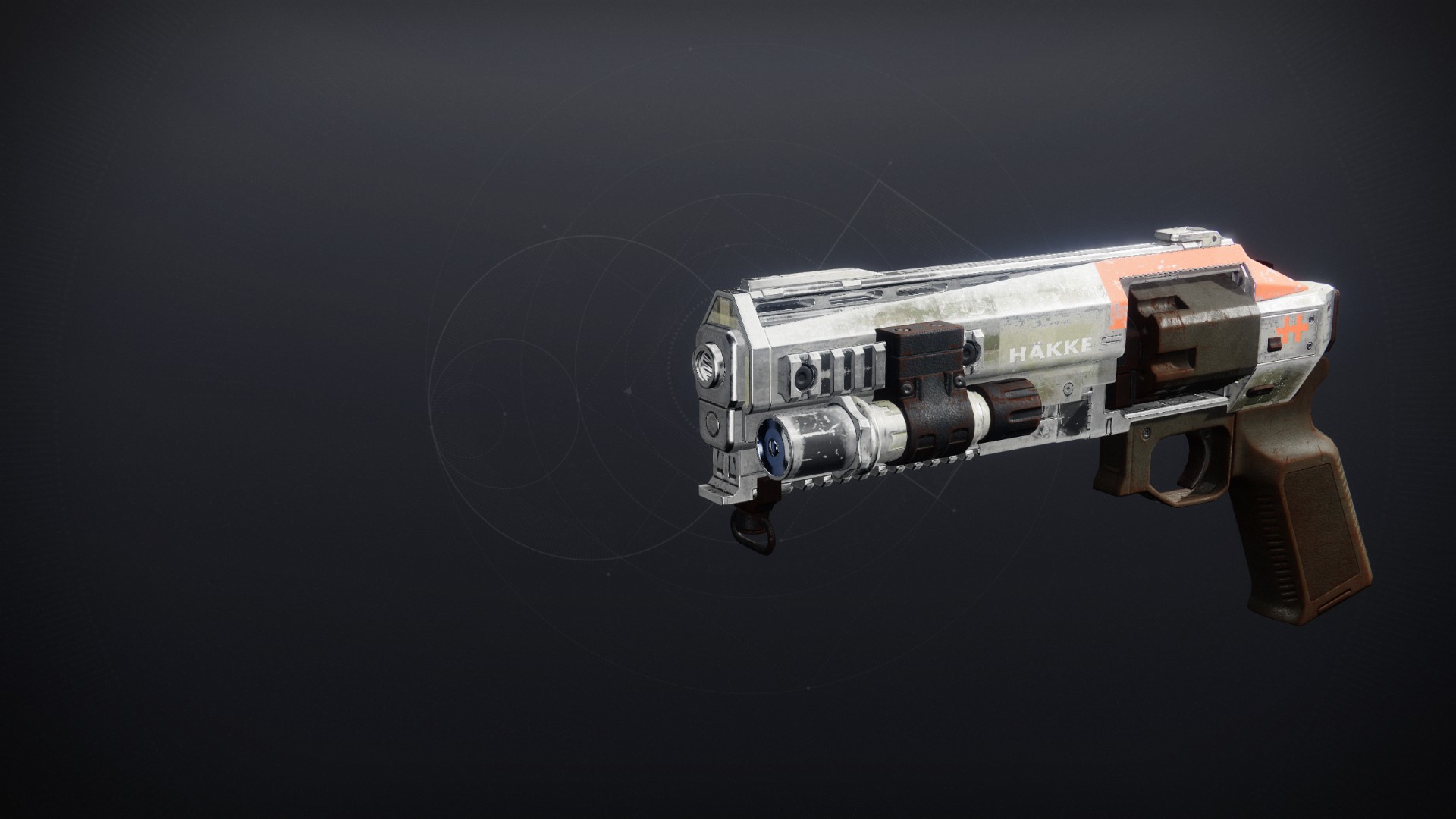 This image is a screenshot of a weapon from the Destiny series of first-person shooter video games developed by Bungie Studios and published by Bungie or Activision. It falls under the screenshot category for a copyrighted computer game or video game, and the copyright for it is most likely held by the company that developed the game. It is believed that the use of a limited number of web-resolution screenshots: