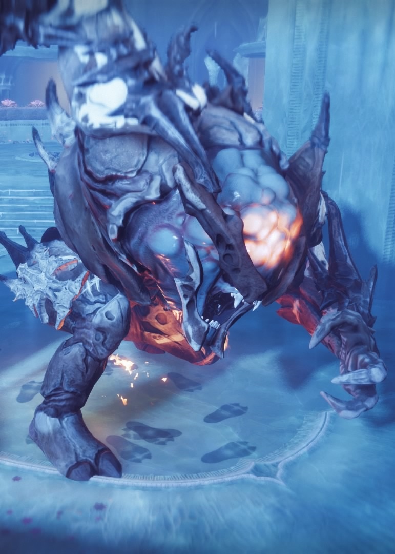 This image is a screenshot of a character or AI unit from the Destiny series of first-person shooter video games developed by Bungie Studios and published by Bungie or Activision. It falls under the screenshot category for a copyrighted computer game or video game, and the copyright for it is most likely held by the company that developed the game. It is believed that the use of a limited number of web-resolution screenshots: