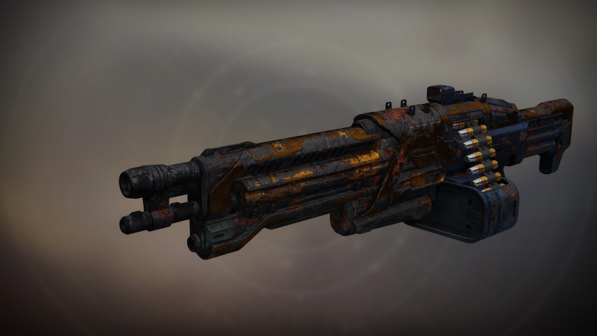 This image is a screenshot of a weapon from the Destiny series of first-person shooter video games developed by Bungie Studios and published by Bungie or Activision. It falls under the screenshot category for a copyrighted computer game or video game, and the copyright for it is most likely held by the company that developed the game. It is believed that the use of a limited number of web-resolution screenshots: