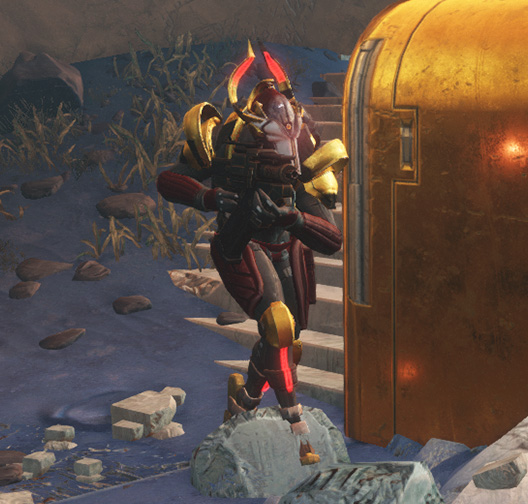 This image is a screenshot of a character or AI unit from the Destiny series of first-person shooter video games developed by Bungie Studios and published by Bungie or Activision. It falls under the screenshot category for a copyrighted computer game or video game, and the copyright for it is most likely held by the company that developed the game. It is believed that the use of a limited number of web-resolution screenshots: