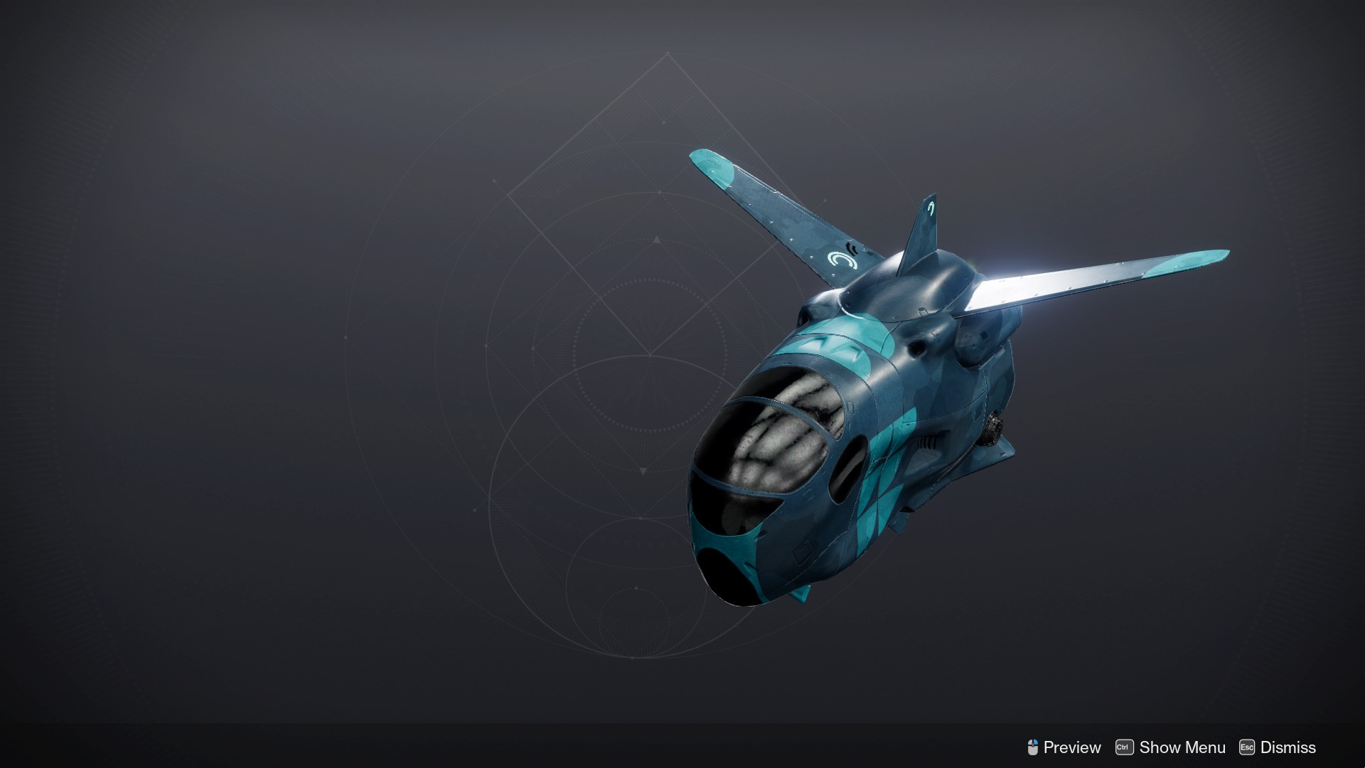 This image is a screenshot of a vehicle from the Destiny series of first-person shooter video games developed by Bungie Studios and published by Bungie or Activision. It falls under the screenshot category for a copyrighted computer game or video game, and the copyright for it is most likely held by the company that developed the game. It is believed that the use of a limited number of web-resolution screenshots: