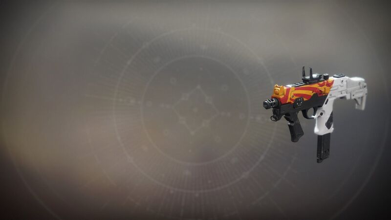 This image is a screenshot of a weapon from the Destiny series of first-person shooter video games developed by Bungie Studios and published by Bungie or Activision. It falls under the screenshot category for a copyrighted computer game or video game, and the copyright for it is most likely held by the company that developed the game. It is believed that the use of a limited number of web-resolution screenshots: