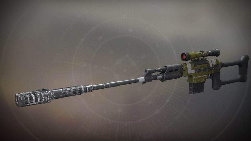 This image is a screenshot of a weapon from the Destiny series of first-person shooter video games developed by Bungie Studios and published by Bungie or Activision. It falls under the screenshot category for a copyrighted computer game or video game, and the copyright for it is most likely held by the company that developed the game. It is believed that the use of a limited number of web-resolution screenshots: